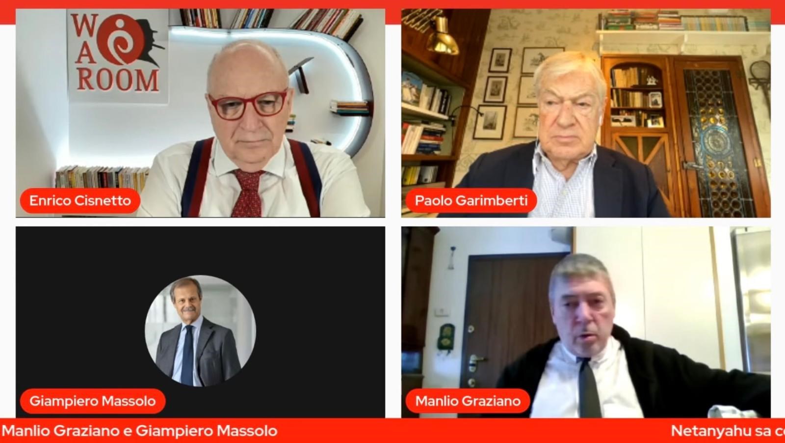 Enrico Cisnetto ne discute con Paolo Garimberti, Giornalista, Editorialista La Repubblica, Manlio Graziano, Analista geopolitico, autore di “Come si va in guerra” (Mondadori), Giampiero Massolo, Ambasciatore, Direttore Geopolitical Risk Observatory Università Luiss Guido Carli
