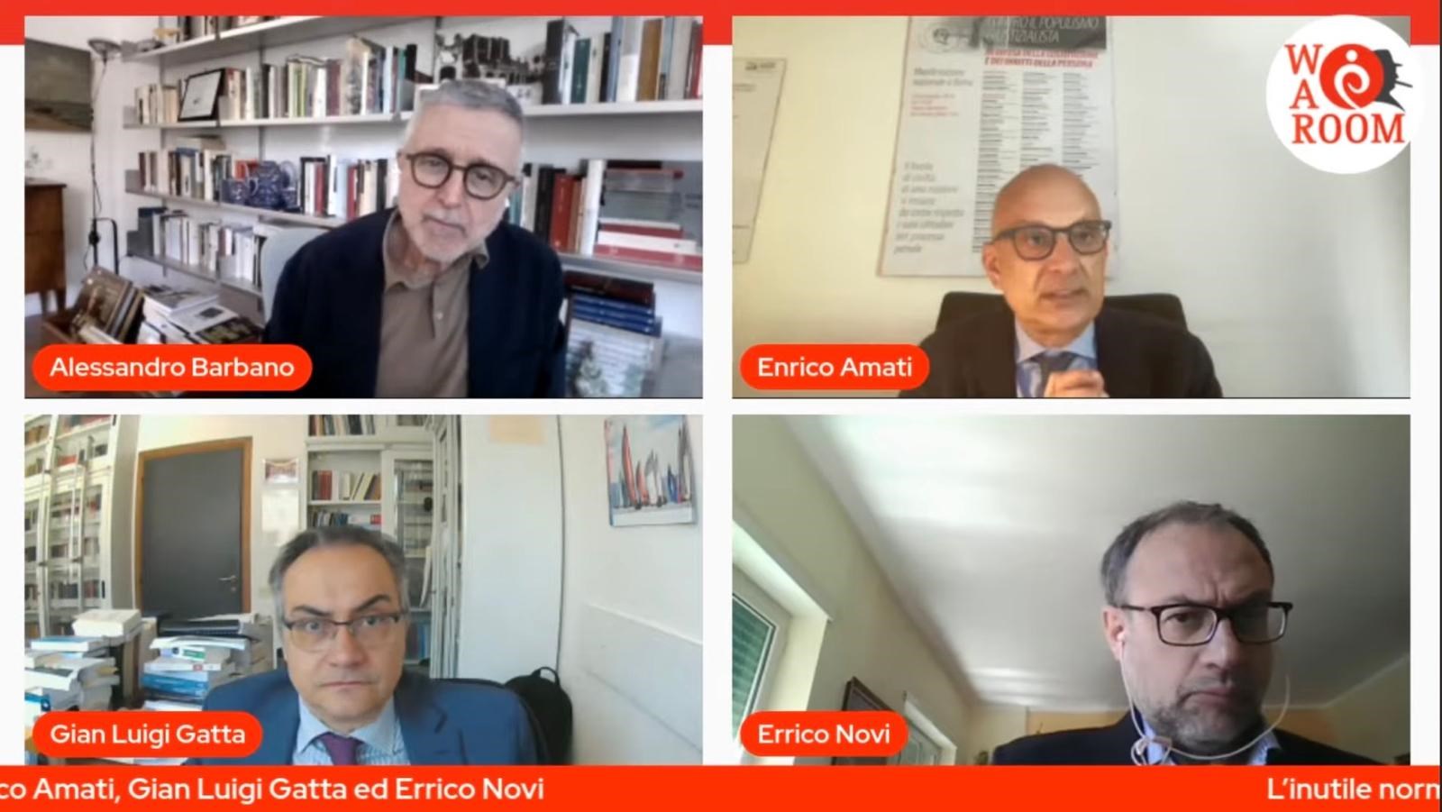 Alessandro Barbano ne discute con Enrico Amati, Professore associato di Diritto penale Università di Udine, Componente di Giunta Unione delle Camere Penali Italiane, Gian Luigi Gatta, Professore di Diritto penale Università degli Studi di Milano, Presidente dell'Associazione Italiana dei Professori di Diritto Penale ed Errico Novi, Vicedirettore Il Dubbio