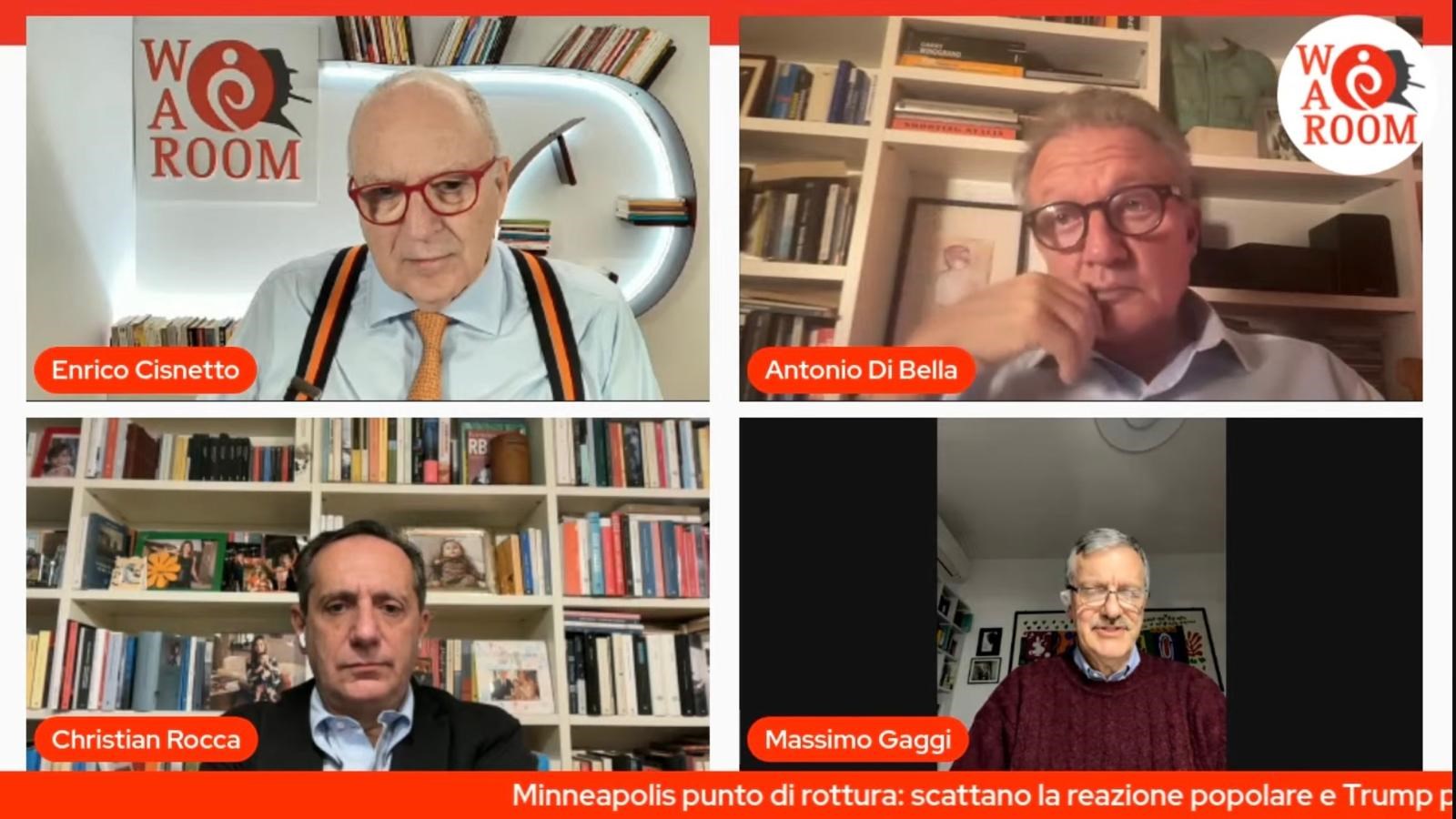 Enrico Cisnetto ne discute con Antonio Di Bella, Giornalista, già Corrispondente dagli Stati Uniti, già Direttore Tg3, Rai Tre e Rai News 24, autore di “Gli zar della Casa Bianca” (Solferino), Massimo Gaggi, Editorialista Corriere della Sera e Christian Rocca, Direttore Linkiesta, autore e conduttore con Stefano Pistolini del podcast This is not America